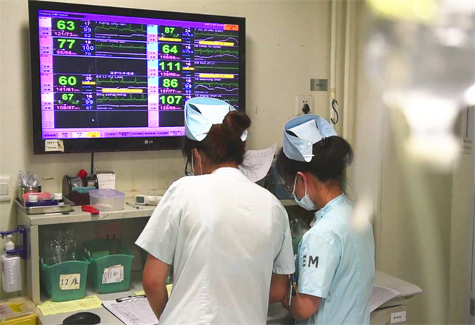 “通常心肺復蘇只需做半小時,但我們覺得他有希望,所以大家拼全力讓他恢復了心跳。”輕輕地靠近病人,張國強拿起聽診器仔細聽診,一邊聽一邊看著監護儀上的數據。只要有百分之一的希望,就要付出百分之百的努力,急診科的醫生們沒這樣說,但他們一直在這樣做。
