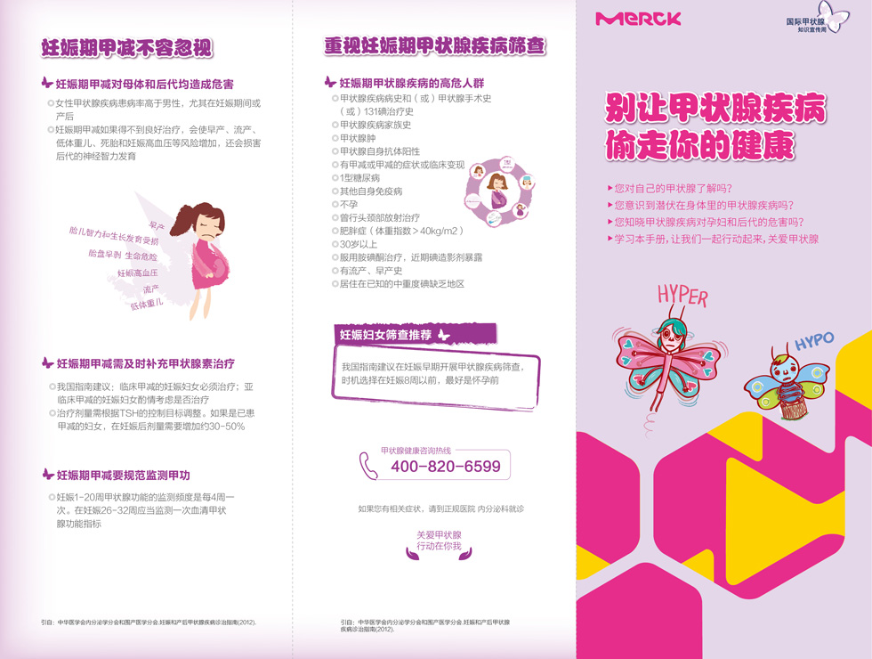 每年的5月25日所在的一周為國際甲狀腺知識宣傳周,今年的主題為“健康備孕·你查甲狀腺了嗎”。26日,“2016年第八屆國際甲狀腺知識宣傳周”啟動儀式在人民日報社新媒體大廈舉行。中華醫學會內分泌學分會前任主任委員滕衛平教授、中國疾控中心慢病中心副主任李志新、國家衛生計生委宣傳司沈閏州、中華醫學會圍產醫學分會主任委員楊慧霞教授、人民網副總編輯孫海峰、默克公司代表等出席了本次活動。【詳細】