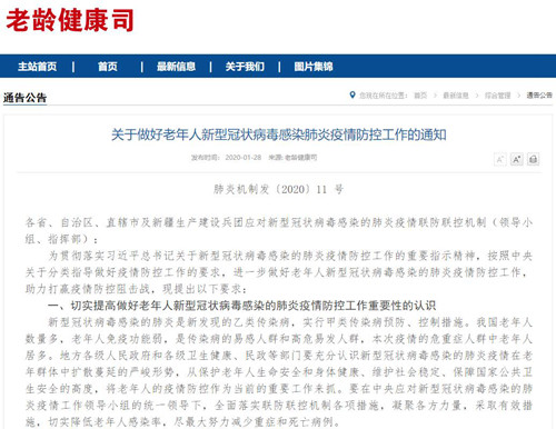 2020年1月28日,國家衛生健康委發布《關于做好老年人新型冠狀病毒感染肺炎疫情防控工作的通知》。《通知》指出,本次疫情的危重癥人群以中老年人居多,要充分認識疫情在老年群體中擴散蔓延的嚴峻形勢,將老年人的疫情防控作為當前的重要工作來抓,盡最大努力減少重癥和死亡病例。 基層衛生機構與老年康復護理機…[詳細]