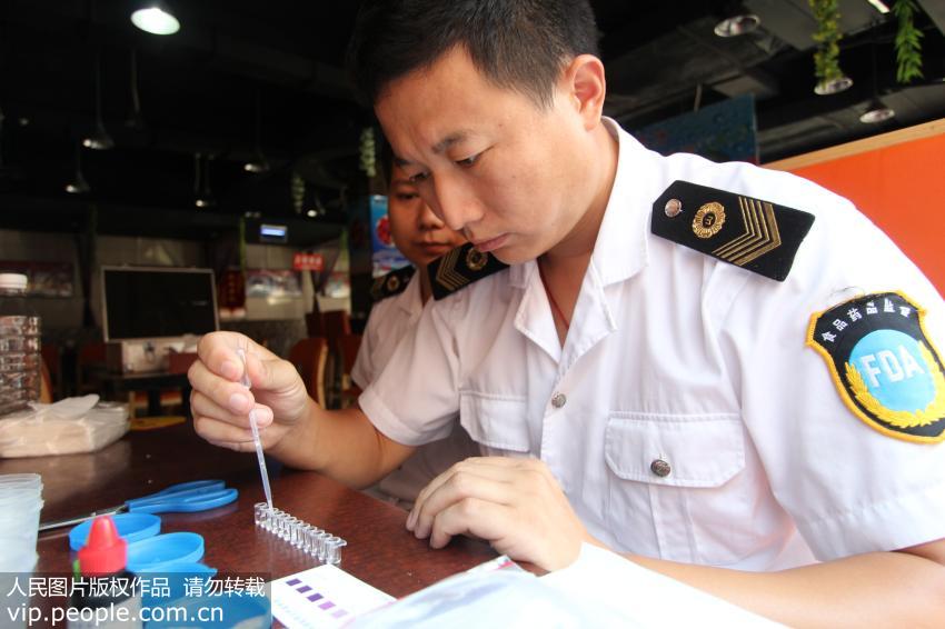 點擊下載本組圖片 執法人員正在檢測食品中是否含非法添加劑。(曹建雄/人民圖片) (聲明:凡帶【詳細】