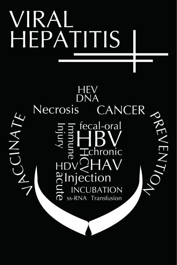 該作品以與病毒性肝炎相關的關鍵詞為主要內容,以英文字母的形式排列,最終形成預防的圖案,黑白醒目,震懾【詳細】