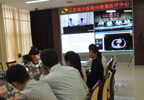 1、采訪團成員觀看江蘇省中醫(yī)院專家與睢寧縣中醫(yī)院的醫(yī)務(wù)人員遠程醫(yī)療會診(人民網(wǎng)記者 權(quán)娟攝)