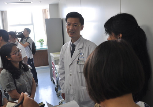 2、江蘇省中醫(yī)院院長方祝元與采訪團成員進行交流(人民網(wǎng)記者 權(quán)娟攝)