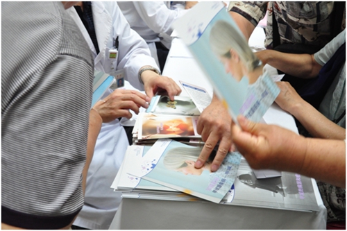 (義診現場市民翻看宣傳手冊 人民網李軼群拍攝)