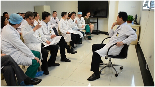 在這間大約30平方米的小房間里,20余位來自基本外科、消化內科、腫瘤內科、病理科、超聲科、放射科、放療科等科室的醫生們共同為10余名患者會診答疑。