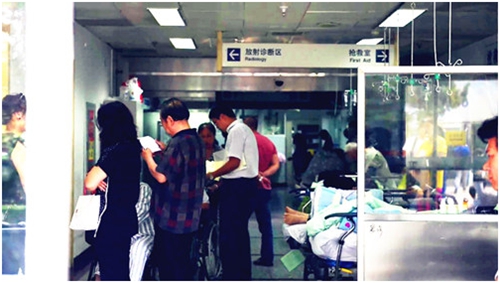 在急診科里,工作最緊張的非搶救室莫屬。站在急診室門外,看著走廊里排得滿滿的病床,站得滿滿得病人家屬。短短十幾米的走廊,加了10張輸液病床,搶救室門口也加了5張床。