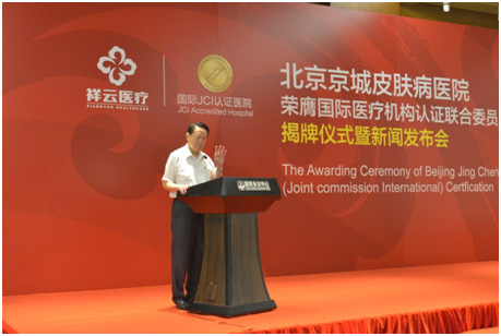 人民網北京8月10日電 (韓雅菘)8日,祥云醫療集團連鎖醫院——北京京城皮膚病醫院通過國際醫療機構認證聯合委員會(JCI)認證的揭牌儀式在北京舉行。中國醫師協會名譽會長殷大奎指出:“醫學為病人服務,不分國界、不分社會制度。民眾對醫療的需求不斷提升,對醫療機構的要求也越來越嚴格,因此要把國際上好的經驗應用到我們自己的醫學實踐中來!