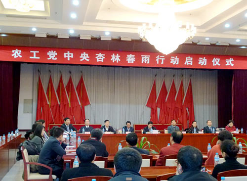 圖為2012年1月8日“杏林春雨行動——農工黨推動醫藥衛生事業發展項目”啟動儀式在京舉行,通過宣傳普及中醫藥文化和科學、推廣使用中醫藥適用技術、總結交流中醫藥學術經驗,從而推動我國醫藥衛生事業的發展,推動中醫藥事業的振興和發展