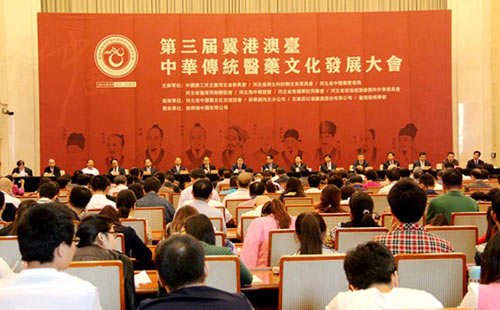 圖為2015年9月21日,農工黨河北省委會等共同主辦第三屆冀港澳臺中華傳統醫藥文化發展大會,為推動中醫藥學術進步、促進四地中醫藥合作發展獻計獻策