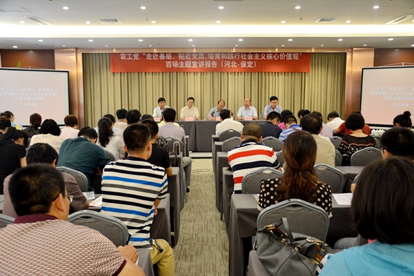 圖為農工黨“走進基層,貼近黨員,培育和踐行社會主義核心價值觀百場主題宣講”走進河北省保定市,圖為農工黨黨員曹東義作題為《優秀中華文化,成就科學中醫》的宣講