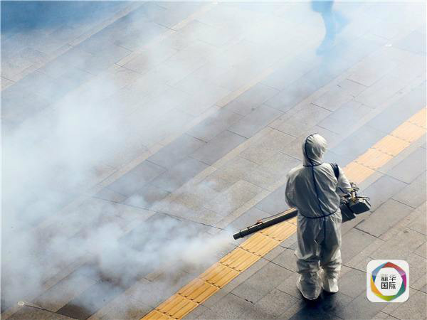 6月11日,在韓國首爾,一名全副武裝的工作人員在地鐵站消毒。 新華社發(fā)