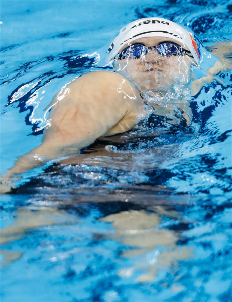 傅園慧在里約奧運(yùn)會(huì)女子100米仰泳決賽中。 新華社記者王麗莉攝