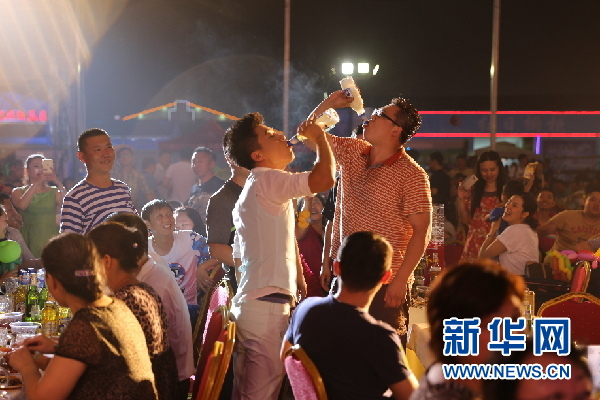 飯桌上的兩個人在拼酒(圖片來源:新華網(wǎng))