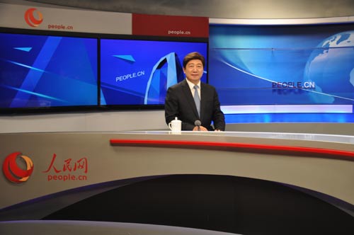 圖為中國人民健康保險股份有限公司黨委書記、總裁宋福興在訪談室
