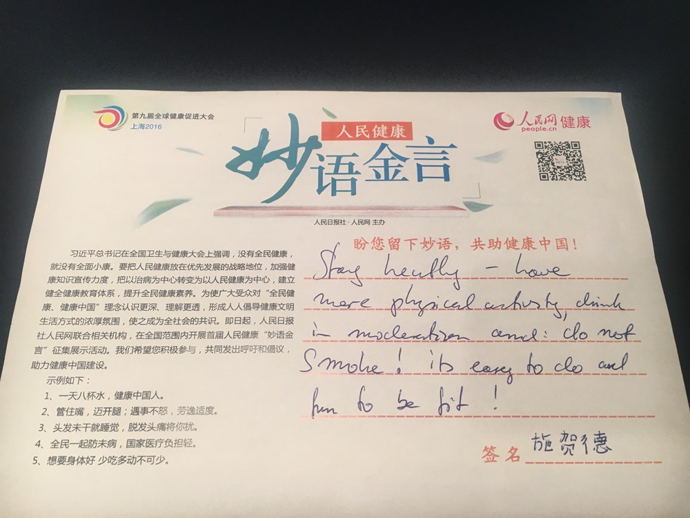 世界衛(wèi)生組織駐華代表施賀德參與人民健康妙語金言征集活動