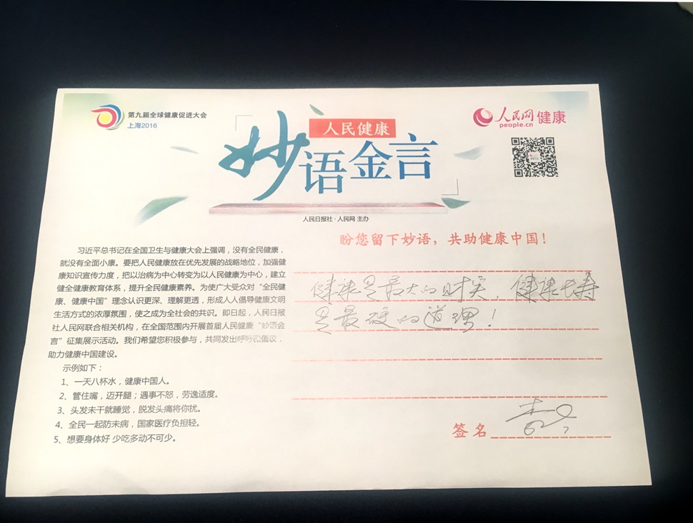 北京大學(xué)教授李玲參與人民健康妙語金言征集活動(dòng)