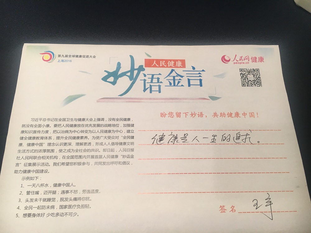 中國疾控中心主任王宇參與人民健康妙語金言征集活動