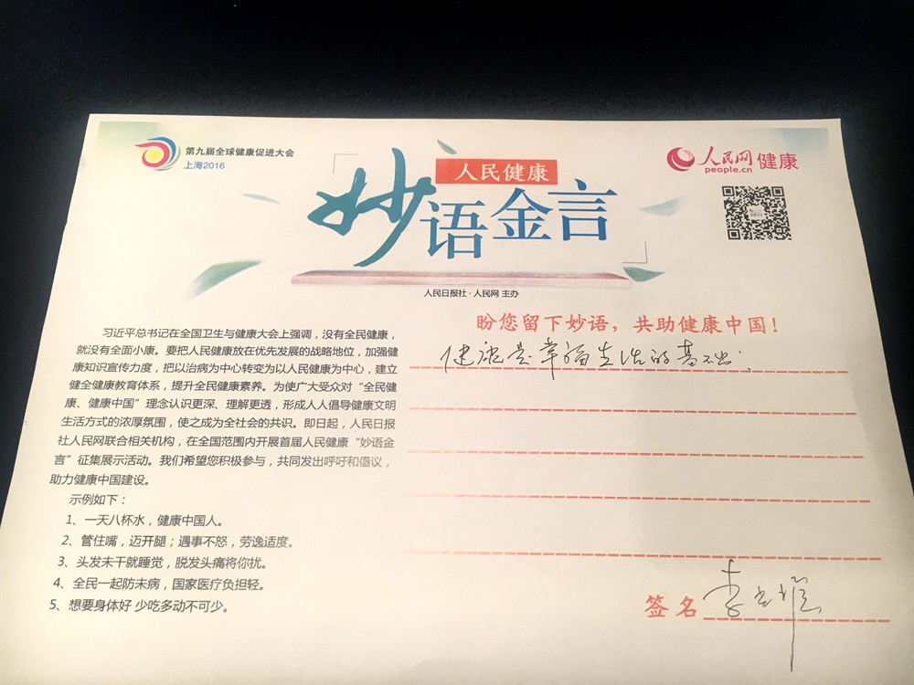 上海市健康促進協會副會長李光耀參與人民健康妙語金言征集活動