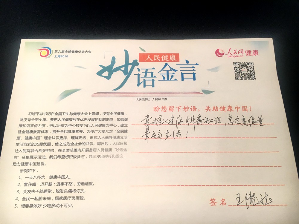 中華預(yù)防醫(yī)學(xué)會(huì)會(huì)長王隴德參與人民健康妙語金言征集活動(dòng)