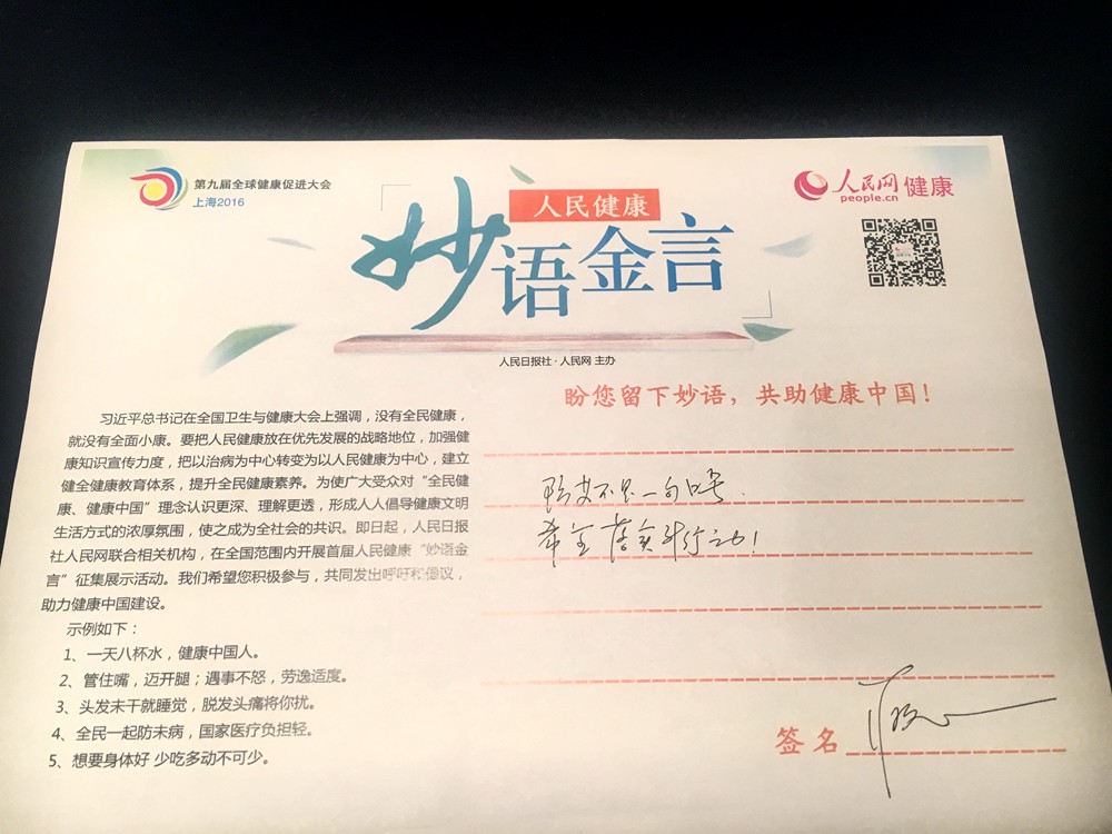 中國艾滋病防治宣傳員蔣雯麗參與人民健康妙語金言征集活動
