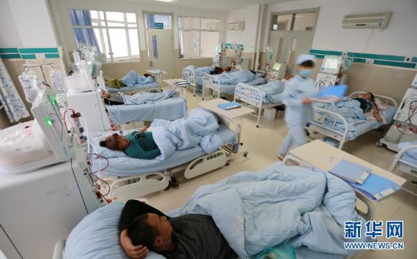 黑龍江泰來縣人民醫院的一名醫護人員在血液透析室內巡視。(圖片來源:郝勁飛/新華社)