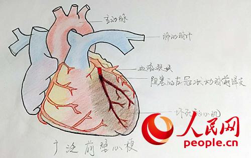 左冠狀動(dòng)脈前降支血供受阻造成心臟前壁、左室前側(cè)壁、室間隔的前2/3部位的心肌急性缺血壞死。(“達(dá)醫(yī)曉護(hù)”供圖)