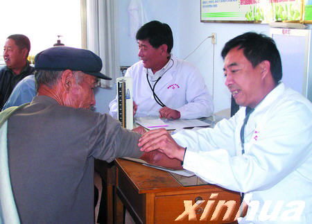 山東省高密市立醫院醫務人員為部分社區的老年人免費體檢。(萬前 欽凱/新華網)
