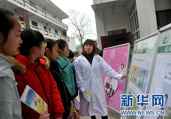 重慶市大足區鐵山中學健康老師講解青春期應注意的行為規范。(高明科/新華網)