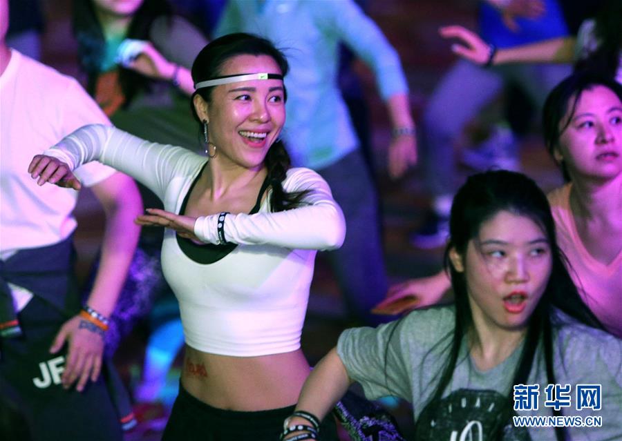 3月23日,健身愛好者隨著音樂舞動。(陳飛/新華社)