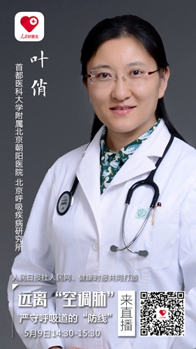 為了提高大眾對于職業和家居環境污染的認識水平,加強個人呼吸道、肺臟防護意識,5月9日(周二)下午2:30,由人民日報社人民網、健康時報聯手打造的“人民好醫生”客戶端將邀請首都醫科大學附屬北京朝陽醫院北京呼吸疾病研究所主任醫師葉俏教授,進行視頻、圖文直播,并在線解答大家的提問。