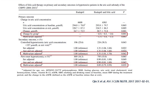 在高血壓人群中探索葉酸治療對降低血尿酸水平的療效