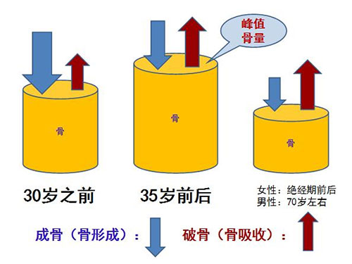 人一生的骨量是一個(gè)動(dòng)態(tài)平衡的狀態(tài),在30歲之前時(shí),體內(nèi)的骨量呈上升趨勢(shì),35歲前后達(dá)到峰值,之后體內(nèi)的骨量開(kāi)始不斷下滑。