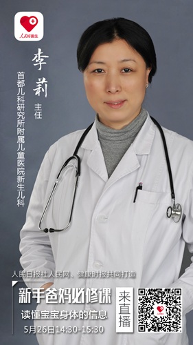 5月26日(周五)下午2:30,由人民日報社人民網(wǎng)、健康時報聯(lián)手打造的“人民好醫(yī)生”客戶端將邀請首都兒科研究所附屬兒童醫(yī)院新生兒科主任李莉教授進(jìn)行視頻、圖文直播,并在線解答爸爸媽媽們的提問。