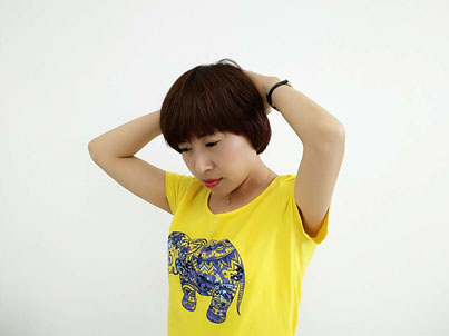 ②將右臂舉至腦后,肘部彎曲,目的是要將肘部移動到腦后中央,右手落在肩胛骨之間。