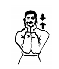 ③ 兩手掌托住下頜,用力低頭,使下頜下壓,同時手掌頂住下頜不讓它向下,然后放松,重復10次;