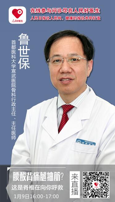 1月9日16:00首都醫科大學宣武醫院骨科行政主任魯世保教授將做客由人民日報社人民網、健康時報聯手打造的“人民好醫生”客戶端,進行視頻、圖文直播,在線解答腰腿疼痛相關問題。如果您有這方面的問題,快來提問吧!