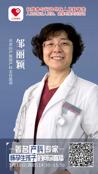 2018年5月10日14:30-15:30,北京婦產醫院產科主任醫師鄒麗穎將在“人民好醫生”客戶端進行視頻、圖文直播,分享孕期母嬰健康管理的經驗,并在線解答相關問題。