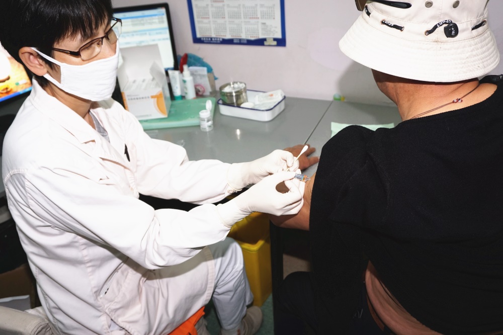 方莊社區衛生服務中心,護士正在為老人免費接種流感疫苗/程志偉攝