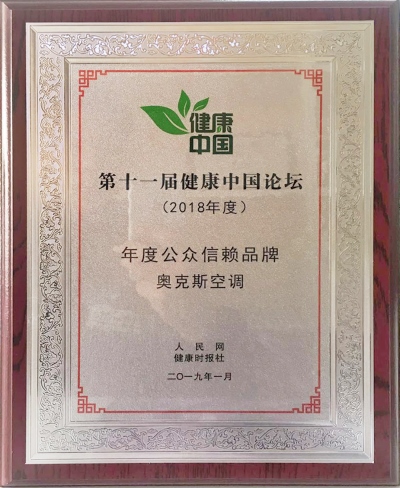 奧克斯空調獲“第十一屆健康中國論壇·年度公眾信賴品牌”獎
