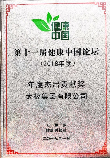 太極集團榮獲“第十一屆健康中國論壇·年度杰出貢獻獎”