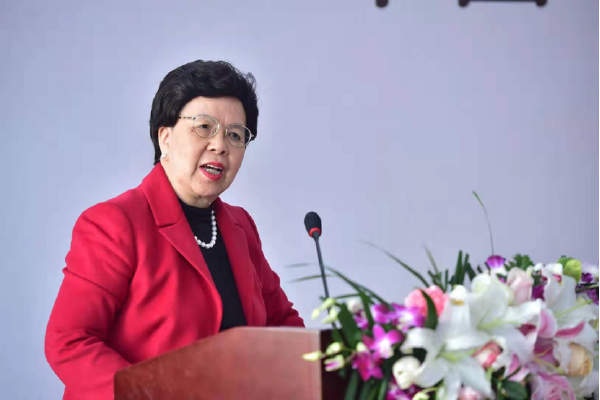 圖片說(shuō)明:世界衛(wèi)生組織原總干事陳馮富珍致辭