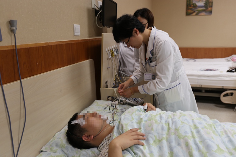 患者在清華長庚醫院睡眠監測病房做監測/清華長庚醫院供圖