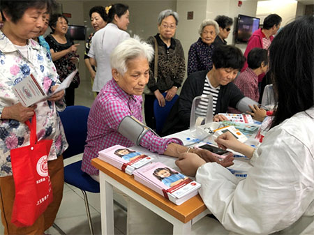 配合“為愛發(fā)聲”項(xiàng)目的開展,全國(guó)范圍內(nèi)50余座城市,300多個(gè)的企業(yè)、地標(biāo)、醫(yī)院、藥店紛紛進(jìn)行了高血壓疾病的患教和義診活動(dòng)。作為慢性疾病的第一道防線,上海市普陀區(qū)長(zhǎng)征社區(qū)衛(wèi)生服務(wù)中心吳玉苗主任協(xié)同社區(qū)中心中專業(yè)醫(yī)護(hù)人員也積極參與到面向轄區(qū)廣大高血壓患者和公眾的高血壓疾病科普教育和義診活動(dòng)中。