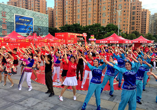 7月17日,由人民網人民健康、金龍魚黃金比例調和油聯合主辦的“金龍魚1:1:1舞出好比例”2019人民廣場舞大賽城市賽寧波站的比賽在江北萬達廣場拉開帷幕,吸引了當地近80支廣場舞隊參加比賽。