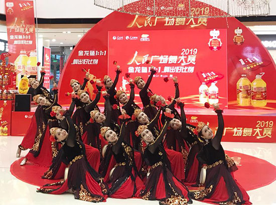 7月22日,由人民網人民健康、金龍魚黃金比例調和油聯合主辦的“金龍魚1:1:1舞出好比例”2019人民廣場舞大賽成都站在武侯區萬達廣場迎來決賽。