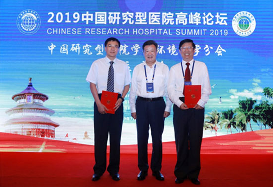 中國研究型醫院學會何振喜會長向分會孫兆林會長、朱京海首席研究員頒發證書