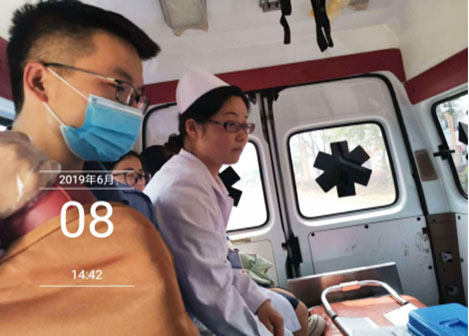 從沾益到播樂衛生院,路途遙遠,山路難行,醫護人員的心一直都牽掛著患者,期待能夠早點趕到患者身邊進行救治。崔永仙主任在救護車上不斷給予遠程急救指導,讓播樂衛生院隨時匯報患者最新情況,直到15:36,沾益區人民醫院心內科及急救人員到達播樂衛生院,立即對患者進行心電圖復查和生命征檢查。
