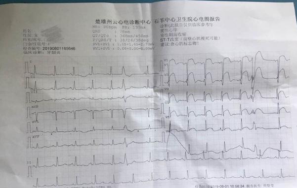 2019年8月1日16:50左右,一位87歲的老人因“牙痛、左肩痛”在家屬的陪護下到石羊衛生院(編者注:云南省楚雄彝族自治州)就診,16:58石羊衛生院完成首份心電圖檢查,17:01將心電圖上傳至大姚縣人民醫院胸痛中心微信平臺,胸痛中心醫療總監、心內科主任普開菊及時給出明確回復:急性廣泛前壁ST抬高心肌梗死。建議立即給“雙抗”,并遠程指導衛生院進行快速轉診......
