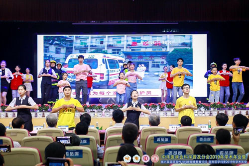 在8月30日下午舉行的醫(yī)學(xué)科普創(chuàng)新案例展示大賽上,共有來(lái)自國(guó)內(nèi)17家醫(yī)院的19個(gè)案例參賽,經(jīng)過(guò)選手精彩展現(xiàn)和評(píng)委綜合評(píng)分,最后評(píng)選出十佳案例、優(yōu)秀案例及最佳網(wǎng)絡(luò)人氣案例獎(jiǎng)。這些案例有的介紹急救操如何與廣場(chǎng)舞結(jié)合,將急救知識(shí)融入當(dāng)?shù)厝罕姌I(yè)余生活;有的闡釋健康科普傳播組織架構(gòu)和立體化傳播途徑,多維度展現(xiàn)科普植根本土、拓展至各地的先進(jìn)經(jīng)驗(yàn)……其中,湖南省人民醫(yī)院改編熱門電影臺(tái)詞,醫(yī)護(hù)人員變身消防員、銀行職員等不同職業(yè)身份,將節(jié)奏鮮明動(dòng)感、歌詞朗朗上口的急救歌廣場(chǎng)舞跳得熱力十足,引發(fā)全場(chǎng)熱烈掌聲。