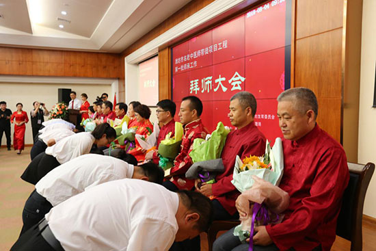 醫院重視中醫藥文化傳承, 跟師學員向老師鞠躬行拜師禮